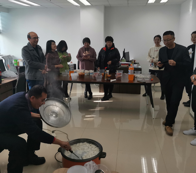 盡管中心目前沒(méi)有食堂,不具備大家一起包餃子的條件,但中心員工參加活動(dòng)的熱情依然高漲,有的人負(fù)責(zé)采購(gòu),有的人從家里帶鍋,有的人幫忙煮餃子,現(xiàn)場(chǎng)熱鬧一片。當(dāng)大家吃上了熱騰騰的餃子時(shí),每個(gè)人都在這寒冷的冬至感受到了大家庭的溫暖。