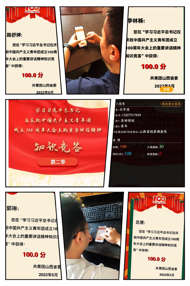 5月24日,地調(diào)院有限公司團(tuán)委組織開(kāi)展“學(xué)習(xí)習(xí)近平總書(shū)記在慶祝中國(guó)共產(chǎn)主義青年團(tuán)成立100周年大會(huì)上的重要講話(huà)精神”線上知識(shí)競(jìng)答活動(dòng)。