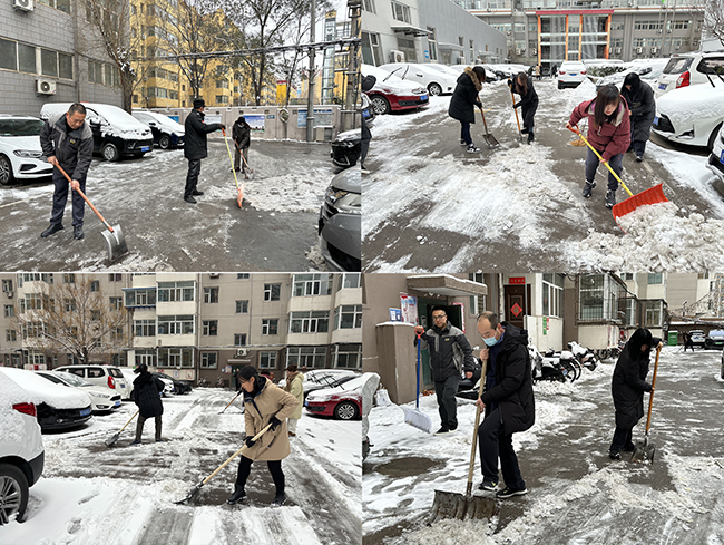 一大早,公司職工不畏嚴(yán)寒、默契配合,齊心協(xié)力的清掃院內(nèi)積雪,盡管雪后冰冷刺骨,但絲毫沒(méi)有影響職工們的鏟雪熱情,大家手持鐵鍬、拿起掃帚,發(fā)揚(yáng)不怕苦,不怕累的精神,與寒風(fēng)搏斗,和積雪抗?fàn)帲瑹崆楦邼q的清雪場(chǎng)面贏得了職工、家屬的一致好評(píng)。在大家熱情積極地共同努力下,經(jīng)過(guò)一個(gè)多小時(shí)的奮戰(zhàn),路面積雪已全部清理完畢,消除了惡劣天氣帶來(lái)諸多不便,有效保障了職工和家屬們的出行安全。