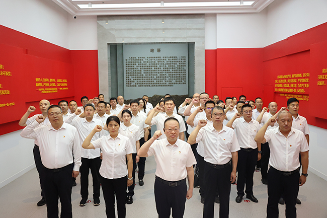 活動中,全體黨員干部面向黨旗,莊嚴舉起右拳,重溫入黨誓詞。鏗鏘有力的誓言在展廳內回蕩,既表達了大家堅守清廉本色的堅定信念,也彰顯了不忘初心、牢記使命的政治擔當。