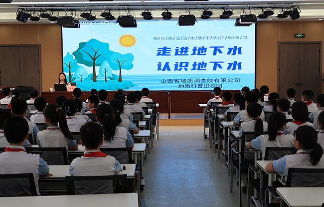 為深入學習貫徹習近平生態(tài)文明建設重要論述精神,發(fā)揮公司黨員先鋒模范作用,在第三十個“世界環(huán)境日”到來之際,山西省地質(zhì)調(diào)查院有限公司應校方邀請,組織青年黨員志愿者來到太原市后小河小學組織開展以“走進地下水, 認識地下水”為主題的地質(zhì)科普進校園活動。學校安排部分高年級“護水小衛(wèi)士”現(xiàn)場聽講并參與互動,其余全部師生在各自班級內(nèi)通過直播的形式觀看講座。