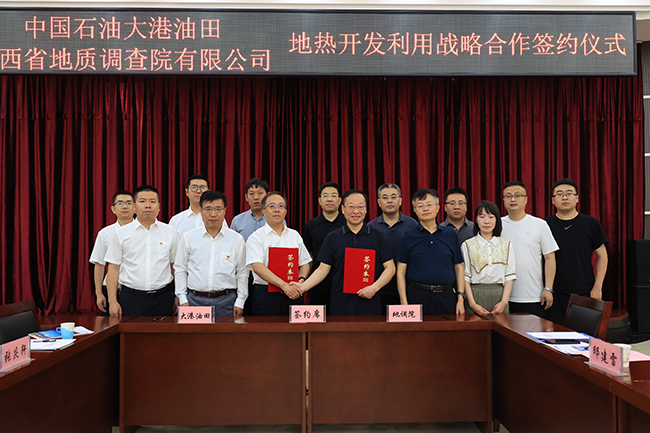 6月13日,山西省地質(zhì)調(diào)查院有限公司與中國(guó)石油大港油田公司舉辦簽約儀式,簽訂地?zé)衢_發(fā)利用業(yè)務(wù)戰(zhàn)略合作框架協(xié)議。雙方充分發(fā)揮各自優(yōu)勢(shì)圍繞山西省地?zé)崮苜Y源勘查、評(píng)價(jià)、開發(fā)利用、技術(shù)研發(fā)等領(lǐng)域,建立長(zhǎng)期的戰(zhàn)略合作伙伴關(guān)系,共同推動(dòng)山西省地?zé)豳Y源科學(xué)高效開發(fā)利用。