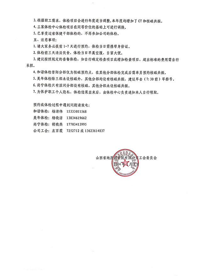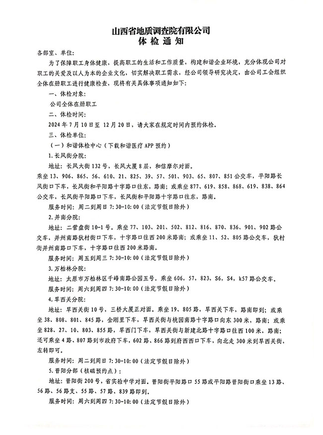山西省地質(zhì)調(diào)查院有限公司2024年體檢通知