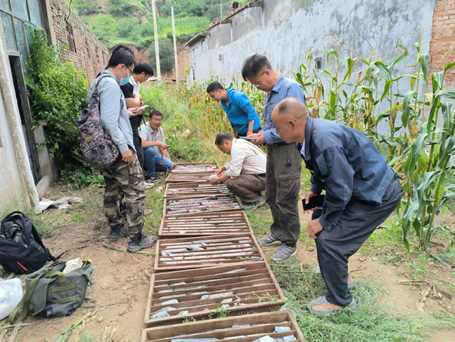 在野外,王教授主要對地表見礦探槽及鉆孔巖心進(jìn)行了仔細(xì)觀察,現(xiàn)場與技術(shù)人員進(jìn)行了充分溝通,提出了許多新觀點(diǎn),新認(rèn)識。在聽取匯報和野外實地勘查后,王教授根據(jù)自己對金礦的認(rèn)識與技術(shù)人員進(jìn)行交流,王權(quán)總工介紹了晉西北地區(qū)金礦近些年來的找礦成果及實際勘查中遇到的困難與問題,而后大家圍繞山西金礦地質(zhì)勘查主要方向進(jìn)行了研討,雙方均表示將充分發(fā)揮各自優(yōu)勢,挖掘合作潛力,加快實現(xiàn)金礦找礦突破。