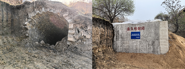 該項目作為生態(tài)環(huán)境部水污染防治儲備庫重點項目,自2023年2月17日開工建設(shè)以來,在老窯水水文地質(zhì)改造方面已順利完成地裂縫和地面塌陷填埋、廢棄井筒回填、廢棄鉆孔封堵以及廟溝鋪底防滲工程施工,水文地質(zhì)改造工程有效阻斷了老窯水補給通道,減少了降雨入滲及地表徑流對采空區(qū)老窯水的補給,經(jīng)過兩年的持續(xù)監(jiān)測,溢流點日均總溢流量相比去年削減了50%以上,風(fēng)摩亭溢流點已經(jīng)斷流3個月,治理效果符合同要求。