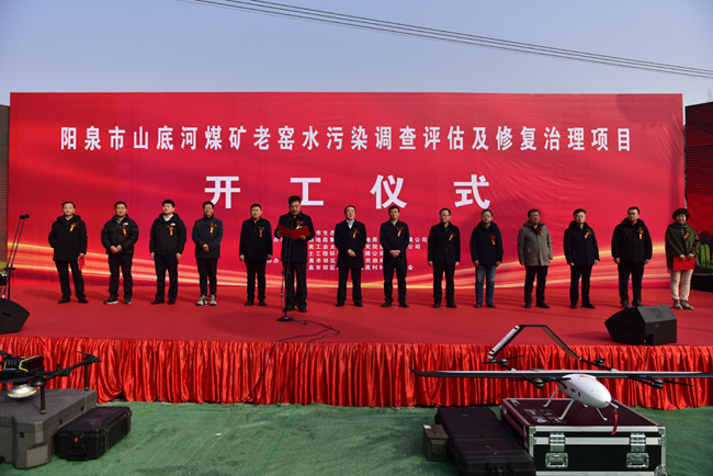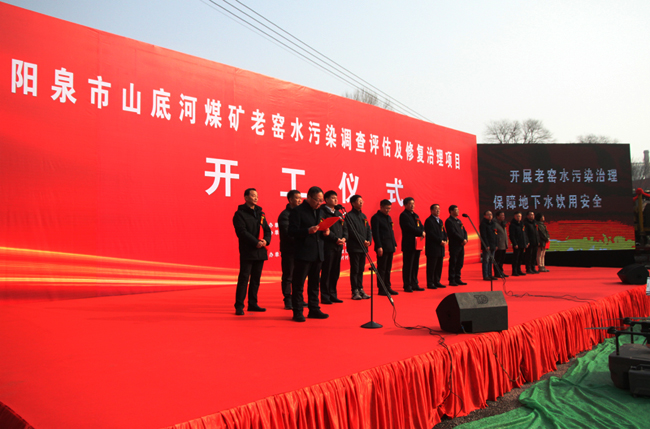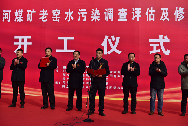2月17日,由山西省地質(zhì)調(diào)查院有限公司承攬的“陽泉市山底河煤礦老窯水污染調(diào)查評(píng)估及修復(fù)治理項(xiàng)目”在陽泉市河底鎮(zhèn)山底村舉辦開工儀式。山西地質(zhì)集團(tuán)董事長(zhǎng)江榮,山西省地質(zhì)調(diào)查院有限公司董事長(zhǎng)李愛民、總經(jīng)理郭紅黨、副總經(jīng)理王權(quán),陽泉市生態(tài)環(huán)境局局長(zhǎng)陳步瑜及陽泉市相關(guān)部門領(lǐng)導(dǎo)參加儀式。儀式由陽泉市生態(tài)環(huán)境局副局長(zhǎng)胡貴卿主持。