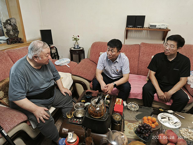 郭紅黨、王曉冬一行先后來(lái)到白建中、朱光麟、王隨生等老黨員家中,與老同志促膝交談,關(guān)切地詢問(wèn)了他們的身體狀況、生活情況、困難需求以及對(duì)公司發(fā)展的寶貴建議,認(rèn)真傾聽(tīng)他們講述當(dāng)年的奮斗歷程,并發(fā)放了慰問(wèn)金,向他們致以親切問(wèn)候,鼓勵(lì)他們堅(jiān)定信心,叮囑他們?cè)谏钪杏龅嚼щy及時(shí)向黨組織反映,一如既往地保持積極樂(lè)觀心態(tài),保重身體。郭紅黨表示,老黨員是黨和國(guó)家的寶貴財(cái)富,他們?yōu)辄h和地勘事業(yè)發(fā)展做出的貢獻(xiàn),我們永遠(yuǎn)不能忘記,要做他們優(yōu)良傳統(tǒng)和崇高精神的傳承者。