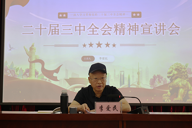 宣講會(huì)上,李?lèi)?ài)民緊緊圍繞主題,從深刻領(lǐng)會(huì)和把握黨的二十屆三中全會(huì)時(shí)代價(jià)值與深遠(yuǎn)意義、解讀《中共中央關(guān)于進(jìn)一步深化全面改革,加速推進(jìn)中國(guó)式現(xiàn)代化的決定》、精準(zhǔn)把握會(huì)議公報(bào)精髓、以釘釘子精神抓好改革落實(shí)等方面對(duì)全會(huì)精神進(jìn)行了系統(tǒng)講解和深入闡釋。